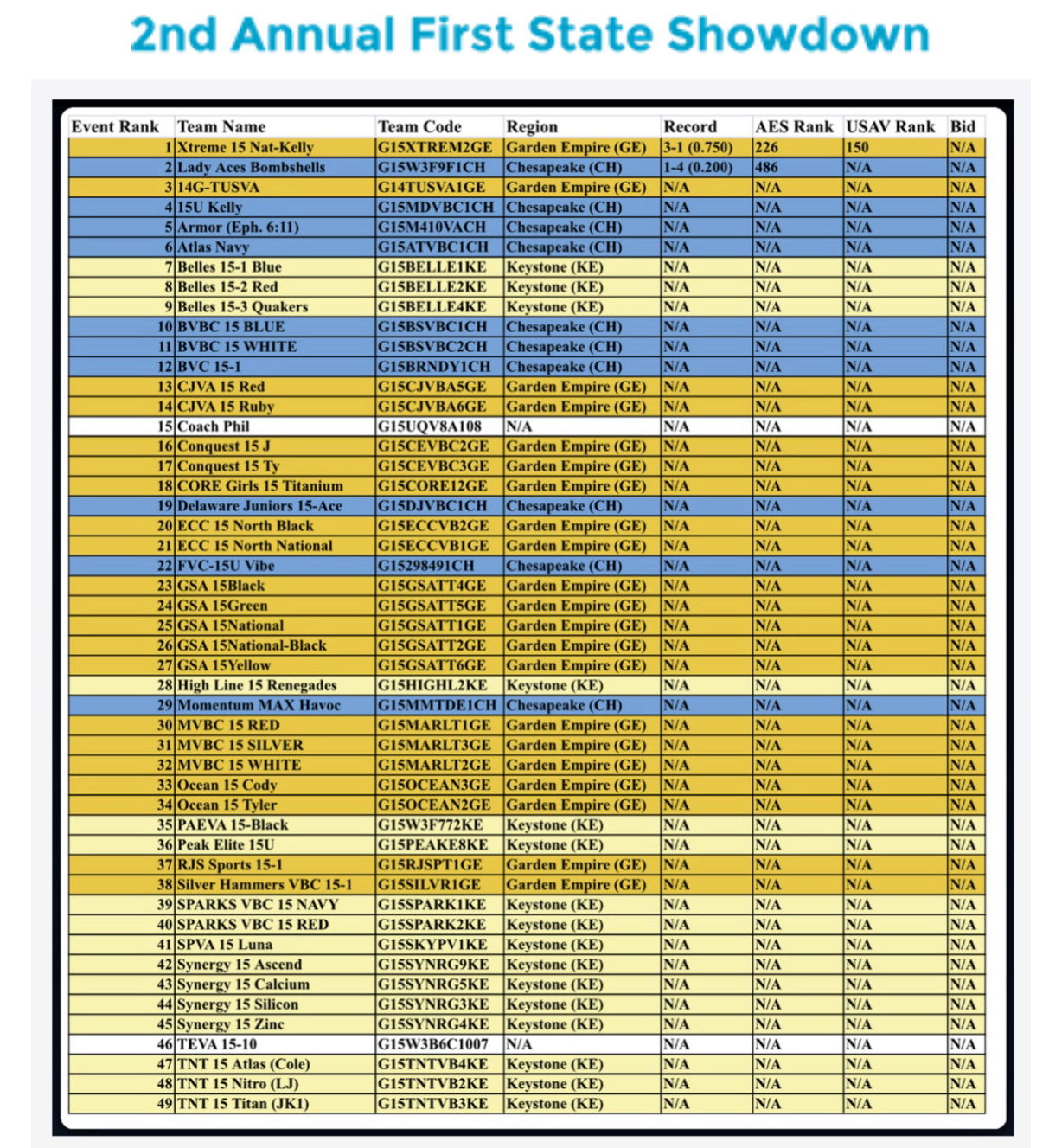 The schedule will be published the Monday prior to the event on VBSchedule.com